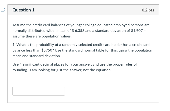Solved Question 1 0 2 Pts Assume The Credit Card Balances Of Chegg Com